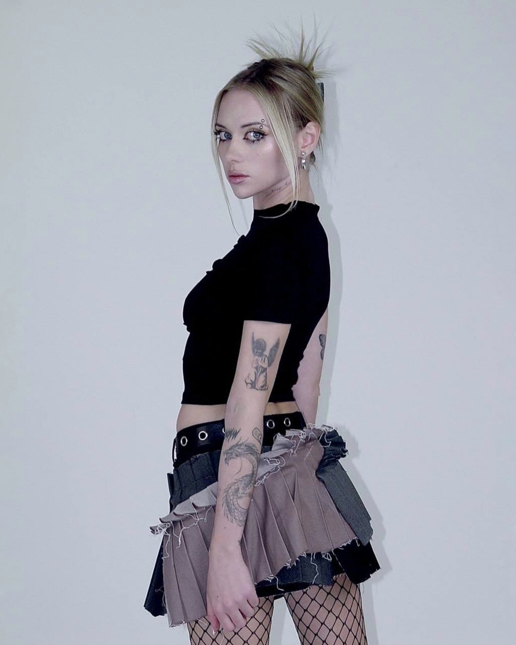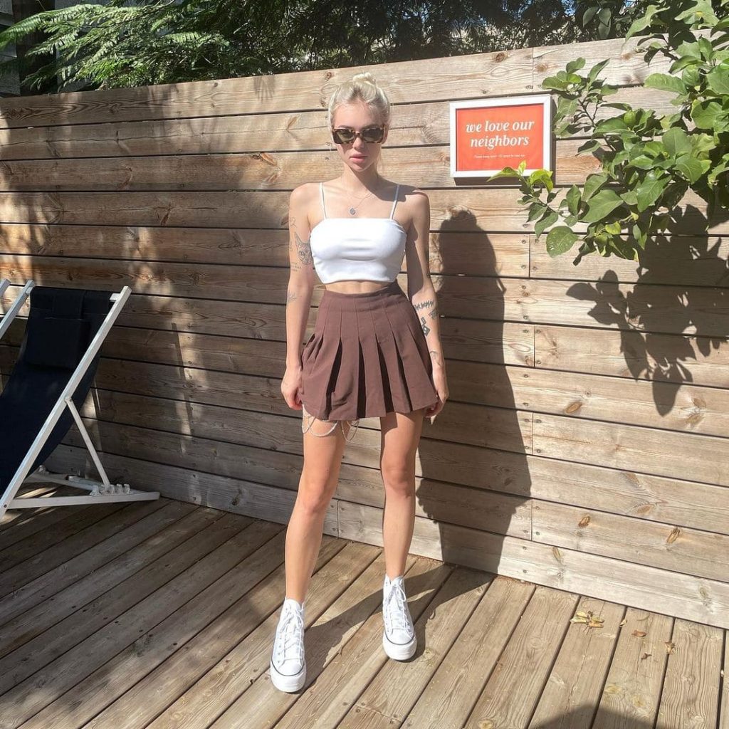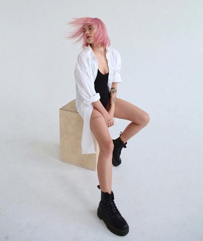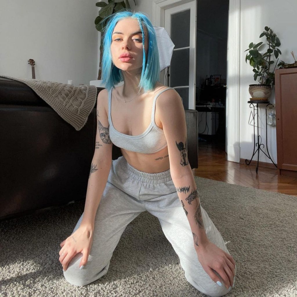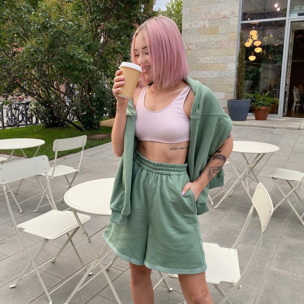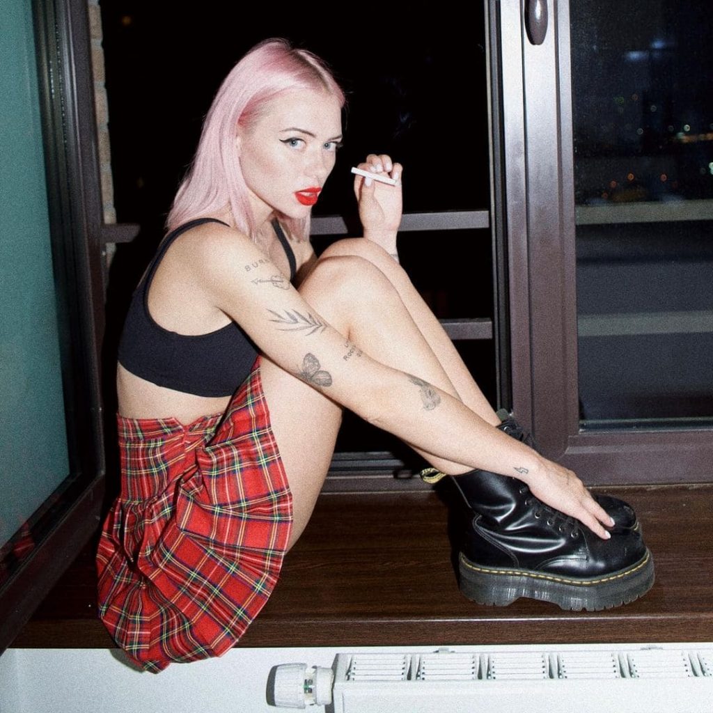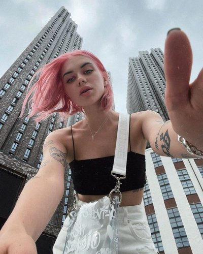 Алина Олешева родилась 27 мая 1999 года в Санкт-Петербурге. Она является барабанщицей музыкальной группы «Кис-Кис». По наследству от отца-музыканта получила любовь к музыке, после окончания школы поступила в музыкальный техникум, который не закончила из-за занятости написанием песен и гастролями.