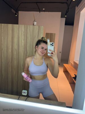 Адушкина активно ведет социальные сети и часто публикует фотографии. В интернете также появились откровенные фото, которые распространены без её согласия. Несмотря на популярность, она сохраняет внимательное отношение к своей приватности и взаимодействует с аудиторией через различные платформы.